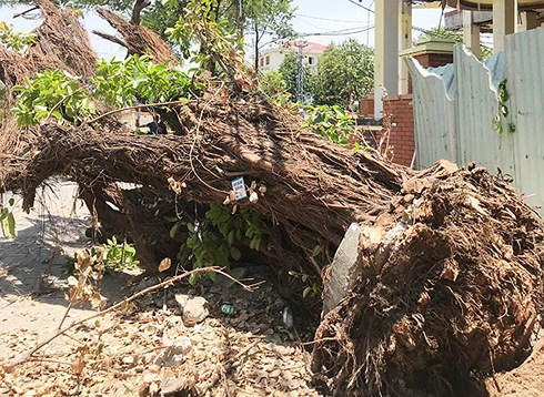 Ngày 4/6, Công ty Công viên Cây xanh Đà Nẵng phát hiện một cây cừa cỡ lớn trên vỉa hè trước nhà số 160 Núi Thành (phường Hòa Thuận Đông, quận Hải Châu) bị đào bật gốc.