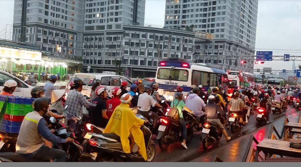 Hành lang tuyến đường Nguyễn Hữu Thọ từ cầu Kênh Tẻ xuống đến huyện Nhà Bè (TP.HCM), dù là đất giao thông, nhưng đã bị chiếm dụng để kinh doanh quán nhậu, bán cây cảnh, tập kết phế liệu nên tạo ra hiện tượng phản cảm, bức bí khi mỗi ngày giao thông ùn tắc tại đây là nỗi ám ảnh của mọi người.