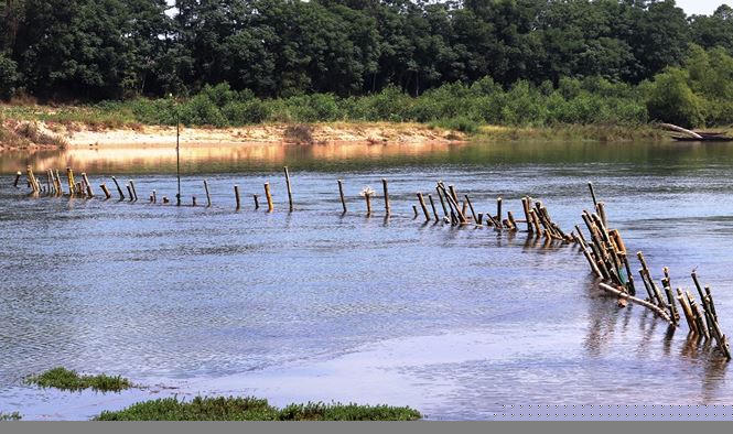 Trận địa cọc tre trên sông Bồ vẫn chưa được người dân tháo dỡ.