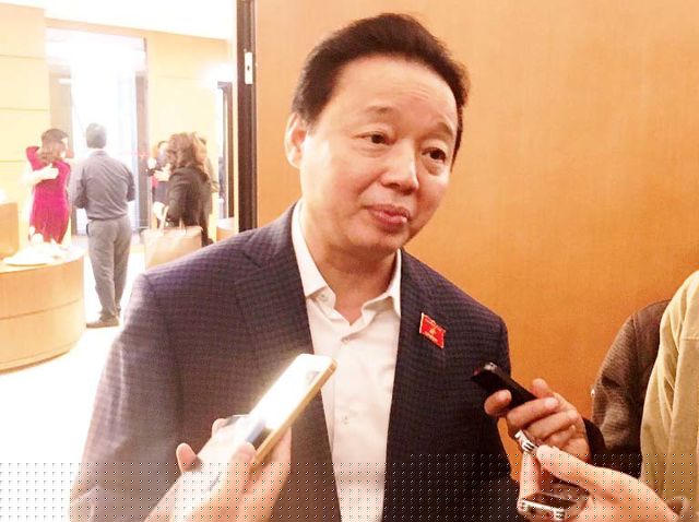 Bên hành lang Quốc hội sáng 28/5, Bộ trưởng Bộ Tài nguyên và Môi trường Trần Hồng Hà đã trao đổi nhanh với báo chí xung quanh thông tin 2 cán bộ Tổng cục Biển và Hải đảo Việt Nam bị doanh nghiệp tố nhận 12 tỷ đồng để “chạy” trúng thầu dự án.