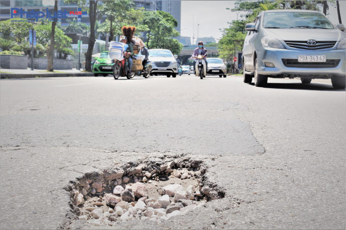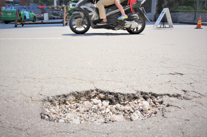 Phố Đào Tấn nằm trên địa bàn quận Ba Đình, thành phố Hà Nội xuất hiện nhiều "ổ gà", gây khó khăn cho người tham gia giao thông.