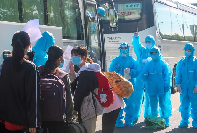 Các công dân tỉnh Quảng Ngãi được tổ chức đưa về địa phương để cách ly 14 ngày trước khi về nơi cư trú