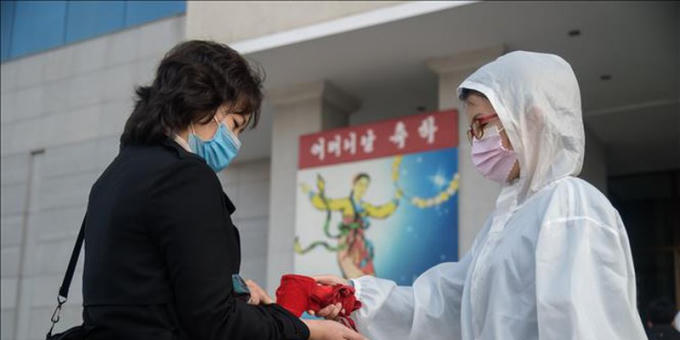 Kiểm tra y tế phòng lây nhiễm Covid-19 tại thủ đô Bình Nhưỡng, Triều Tiên. Ảnh: AFP/TTXVN
