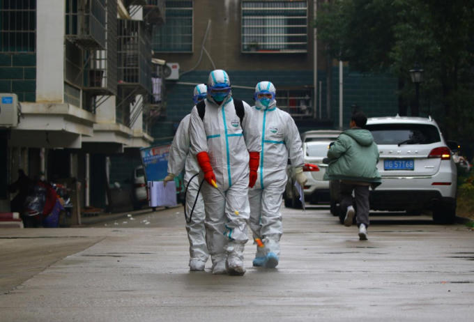 Công nhân từ bộ phận phòng chống và kiểm soát dịch bệnh tại địa phương trong bộ đồ bảo hộ đang khử trùng khu dân cư sau khi dịch coronavirus mới bùng phát, tại Thụy Xương, tỉnh Giang Tây, Trung Quốc ngày 25 tháng 1 năm 2020. Ảnh REUTERS