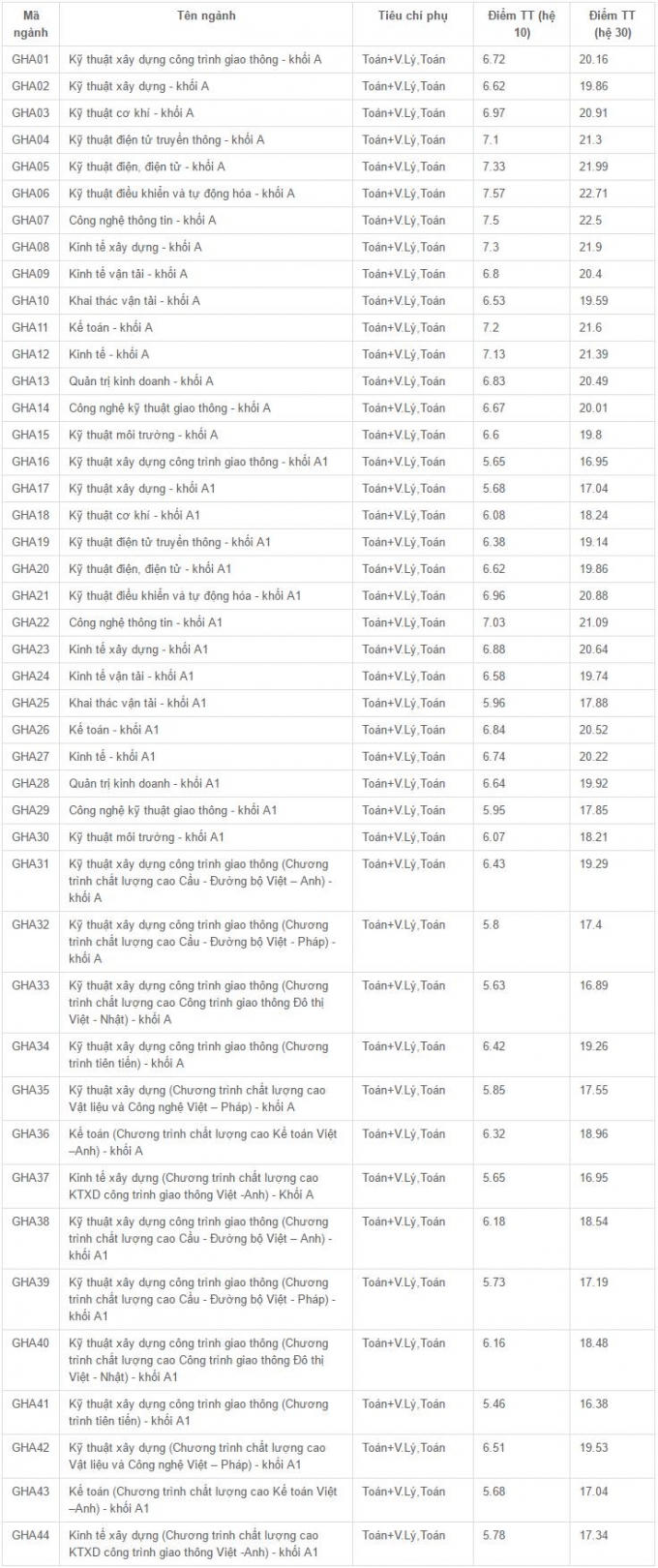 Mức điểm chuẩn cao nhất năm nay của Trường ĐH Giao thông Vận tải là 22,71 (theo hệ số 30) - ngành Kỹ thuật điều khiển và tự động hóa.