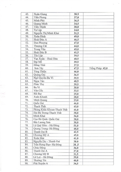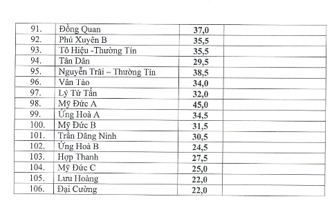 | Danh sách điểm trúng tuyển vào lớp 10 của 106 trường công lập tại Hà Nội. |