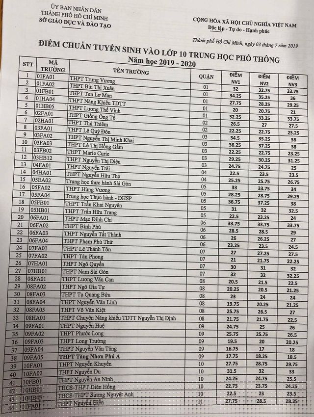 Sáng nay (3/7), Sở GD-ĐT TPHCM công bố điểm chuẩn vào lớp 10 công lập năm học 2019-2020 của 107 trường THPT trên địa bàn. Việc công bố này sớm hơn dự kiến 1 tuần.