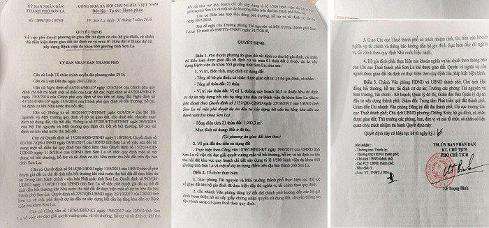 Đặc biệt, thửa đất của ông Cà Văn Trực được ông Cà Văn Tỉnh là cháu nội chia nhỏ cho Cà Thị Dung, Cà Thị Hợp, Cà Văn Nghĩa, Quàng Văn Xanh, Lò Văn Hưng, Lù Thị Hương, Lù Thị Phong. Sau đó cả 7 người này đều được giao đất có thu tiền sử dụng đất (bị thu hồi đất ở) theo Quyết định số 1899/QĐ-UBND do ông Lê Trọng Bình, Phó Chủ tịch UBND TP Sơn La (nay là Chủ tịch UBND huyện Mộc Châu) ký ban hành ngày 31/7/2018.