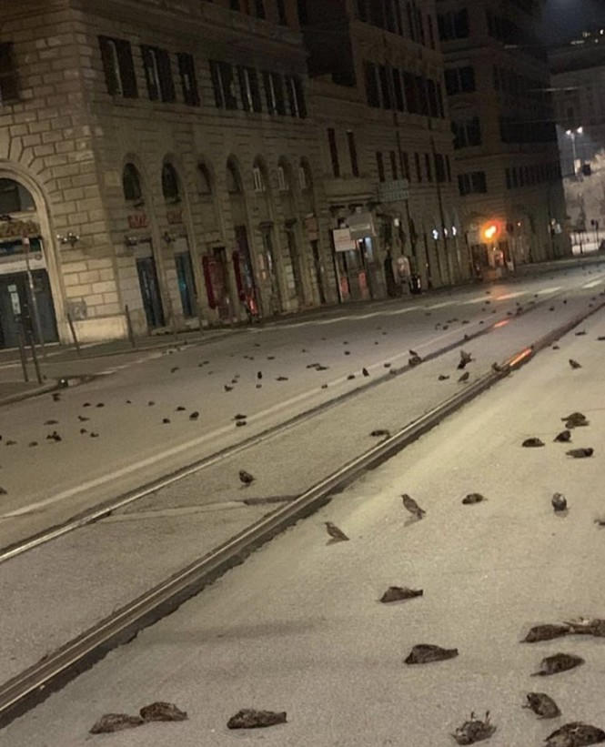 Xác chim nằm la liệt ở Roma. Ảnh: Twitter