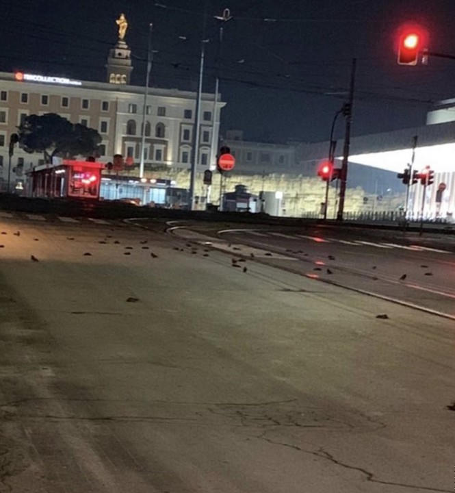 Hình ảnh được đăng tải trên mạng xã hội cho thấy những con chim chết cứng đờ - chủ yếu là chim sáo đá - nằm la liệt ở một số khu vực của Roma.