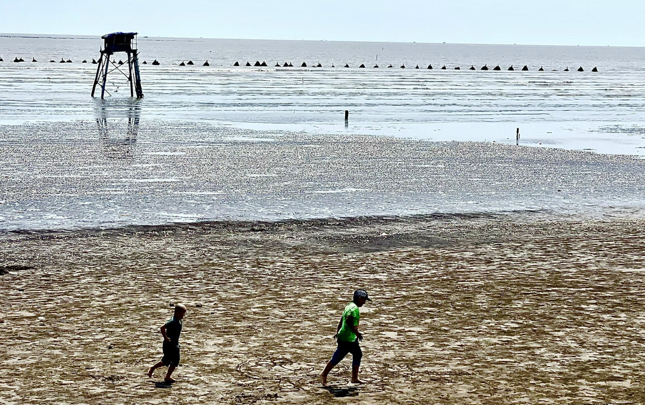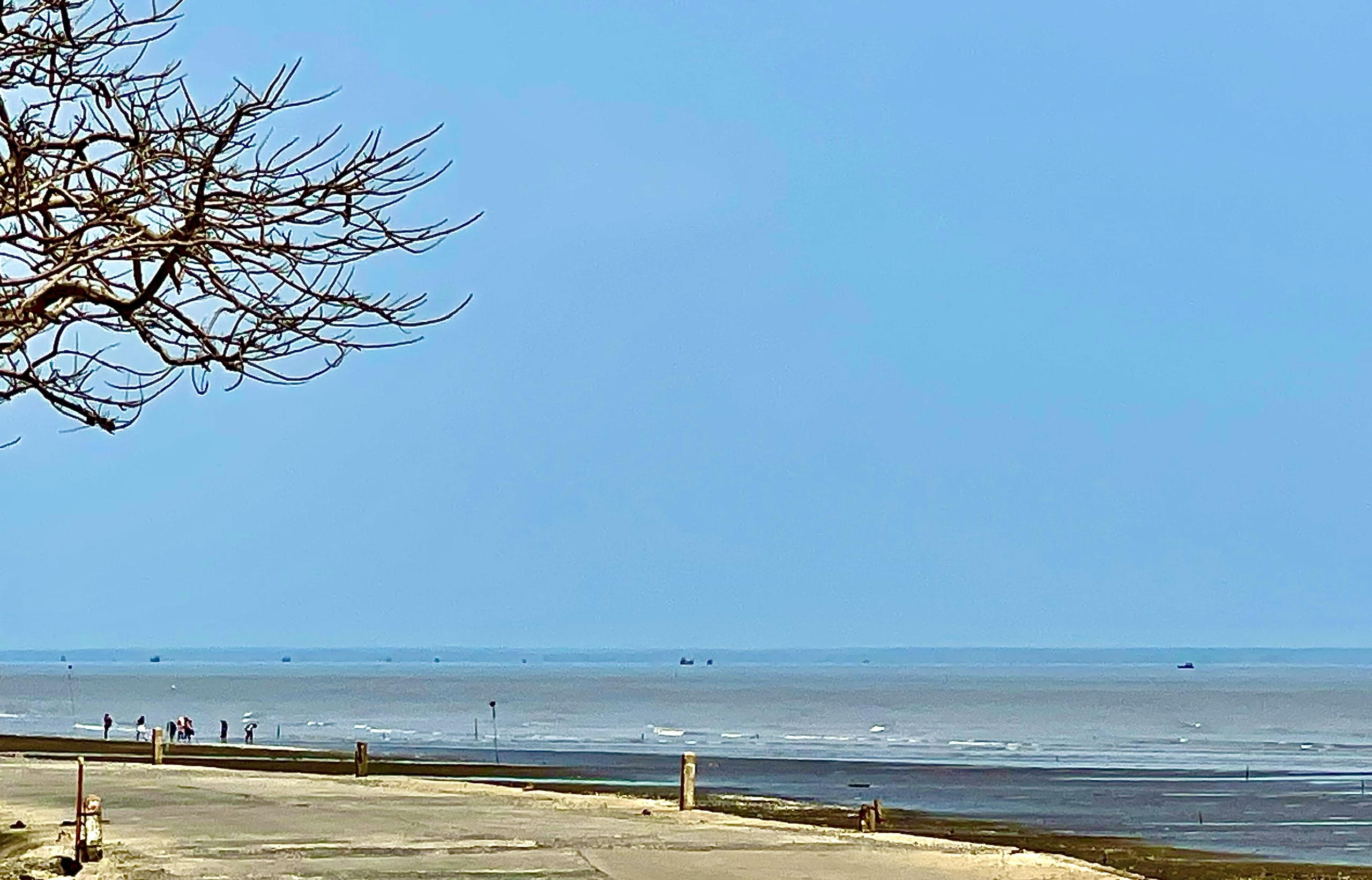 Ngoài những lúc náo nhiệt, bờ biển này vẫn “khoác” lên mình chiếc áo bình yên. Đó là khi bình minh, mặt trời rọi những tia sáng rực rỡ xuống biển như soi mình vào một chiếc gương khổng lồ. Từng làn sóng bàn bạc nhẹ nhàng vỗ vào bờ như ru ngủ cho những chòi nghêu đã “thức trắng” sau một đêm dài “canh gác”. Bãi cát bùn đen phủ trắng vỏ nghêu tạo thành tấm thảm kỳ lạ. Những đứa trẻ theo người lớn đi chơi, tự do chạy nhảy, đuổi bắt nhau trên cát. Những hình ảnh này sẽ khiến cho ai từng là người “con” xứ biển, vì cuộc sống phải xa quê, khi nhìn thấy sẽ như thấy được tuổi thơ của chính mình.
