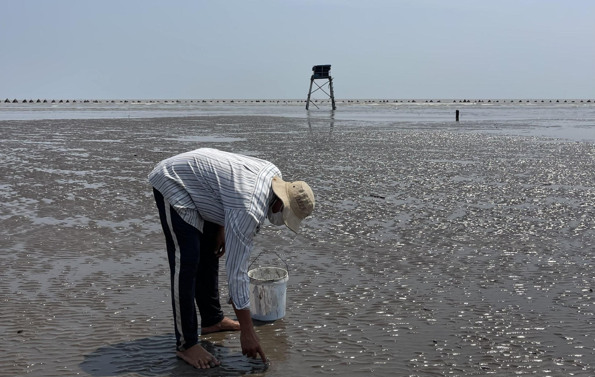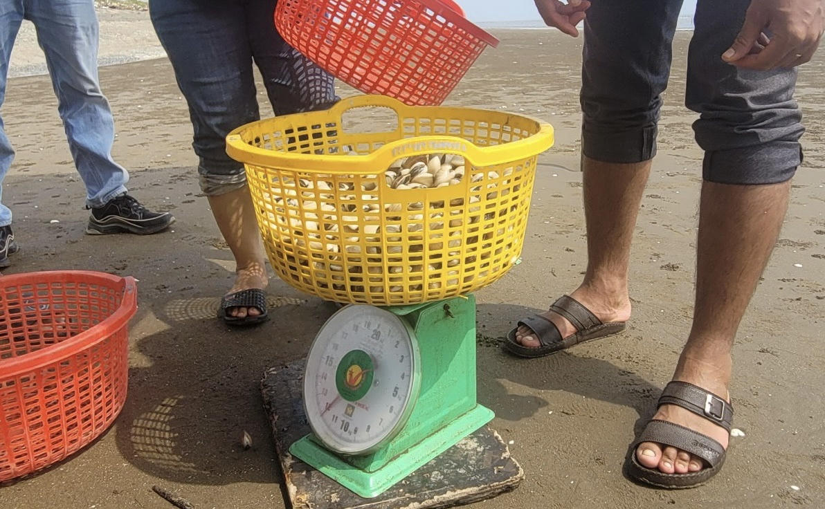 Không khí bãi biển rộn ràng với rất nhiều khách du lịch đang hối hả thu hoạch nghêu. Trong làn gió biển mát lạnh, ai cũng hăng say cào cát, tìm bắt những con nghêu còn sống. Tuy có chút lấm lem nhưng mọi người như được hòa mình vào thiên nhiên hoang sơ, bỏ lại phía sau những áp lực của cuộc sống.
