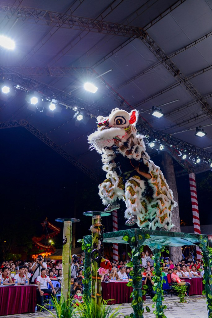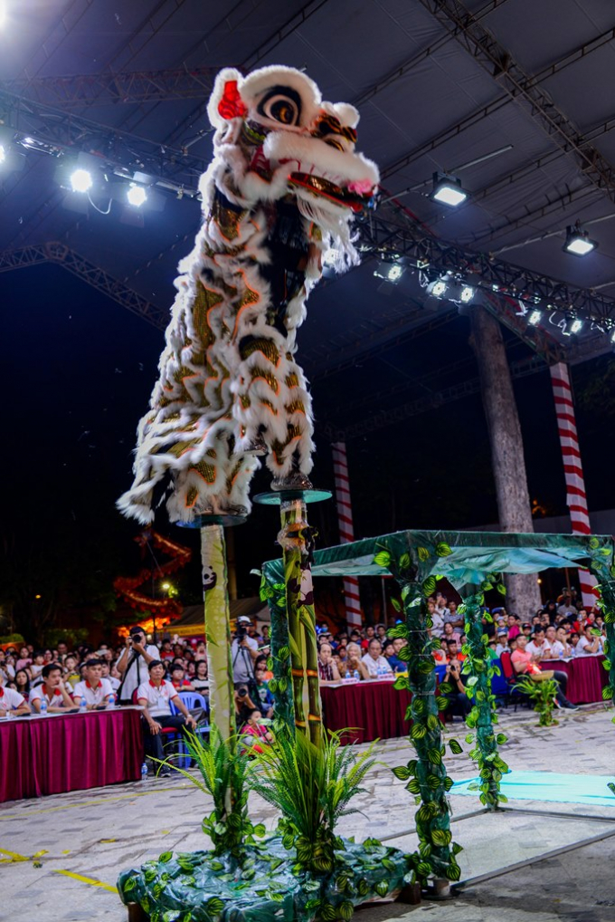 Ấn tượng khó quên nhất trong liên hoan năm nay phải kể đến phần thi đấu đặc sắc, đa dạng và cuốn hút của 25 đoàn lân sư rồng đến từ TP.HCM và ba tỉnh lân cận. Nếu phần thi Lân Địa bửu khiến du khách và người dân phải trầm trồ bởi sự tinh tế trong từng chuyển động, điêu luyện trong lối biểu diễn thì những tiết mục tham dự hạng mục Lân Mai hoa thung lại mang đến không khí sôi động, kịch tính và đầy bất ngờ với những pha trình diễn mạo hiểm trên cao.