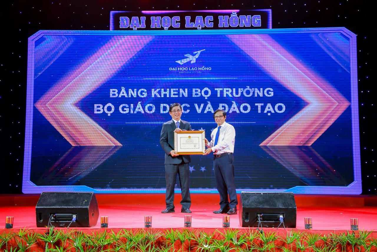 Phó Chủ tịch tỉnh Đồng Nai trao Bằng khen của Bộ Giáo dục và Đào tạo cho Hiệu trưởng trường ĐH Lạc Hồng về khởi nghiệp nhân ngày khai giảng của trường tháng 11/2023