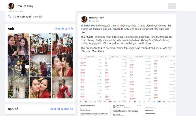 Bài đăng trên trang cá nhân của phụ huynh học sinh