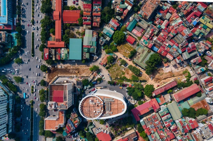 Một phần công trình nằm trong khu di tích Pháo Đài Láng được tháo dỡ để phục vụ giải phóng mặt bằng, phần còn lại được quây tạm bằng tôn.