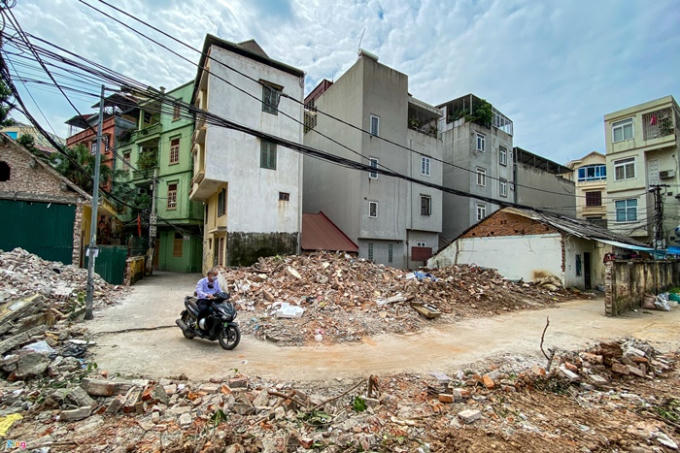 Vướng giải phóng mặt bằng một số hộ dân ở ngõ 14 phố Pháo Đài Láng khiến tiến độ của dự án bị ảnh hưởng.