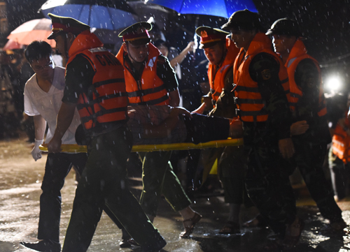 | Các lực lượng tham gia diễn tập xả lũ hồ Hoà Bình trong đêm 14/7. Ảnh: Giang Huy. |