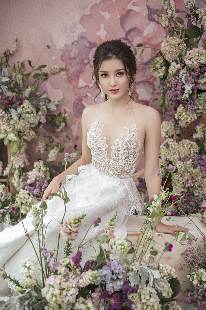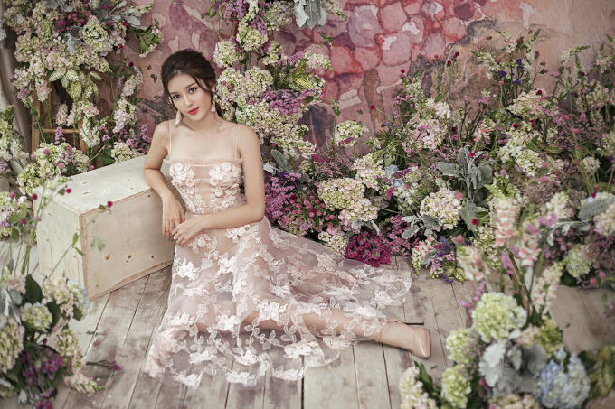 Diện váy xuyên thấu thêu hoa, Huyền My xinh đẹp như một nàng công chúa
