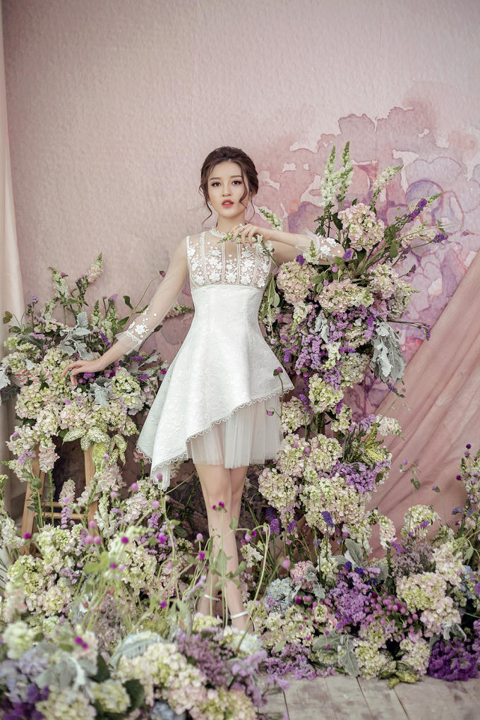 Sự kết hợp khéo léo này vừa mang đến vẻ gợi cảm chừng mực cho người mặc vừa tạo nên điểm nhấn bắt mắt với những hoạ tiết hoa được đính kết cầu kỳ. Gam màu chủ đạo trong bộ sưu tập tiếp tục là những cung bậc cảm xúc ngọt ngào của pastel hay vẻ thanh lịch, nhẹ nhàng của sắc trắng.