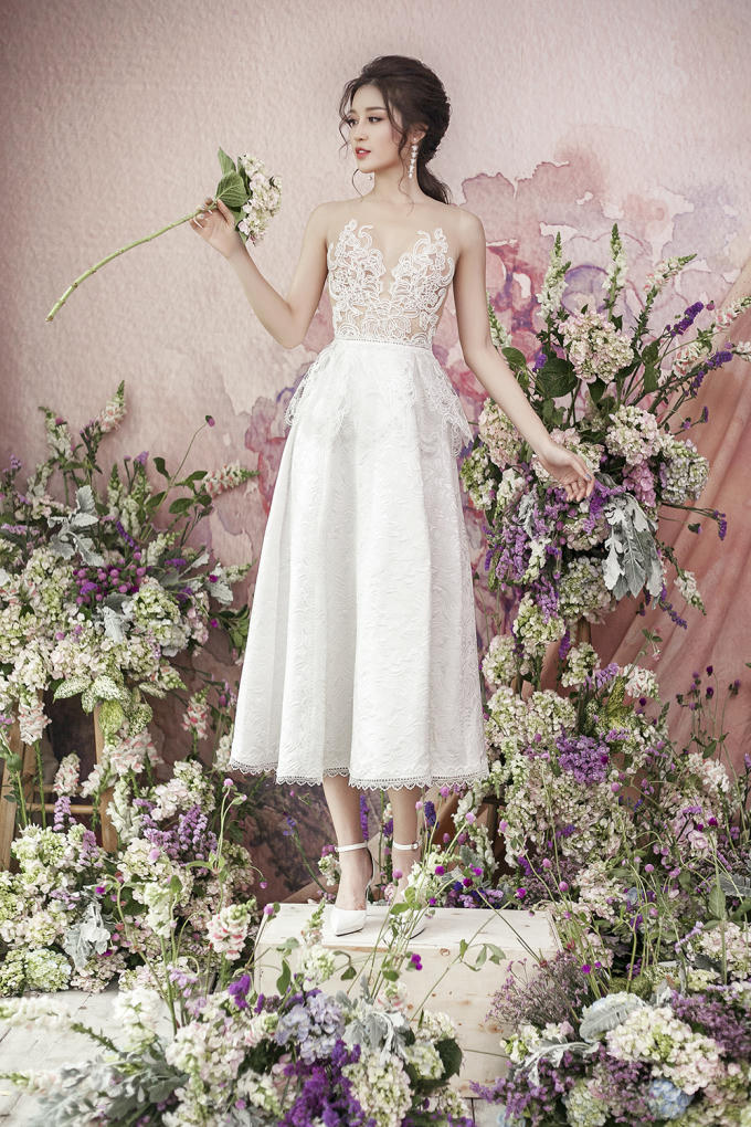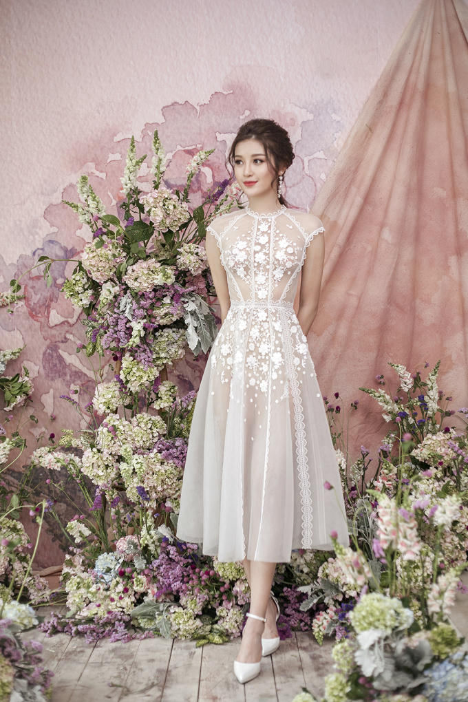 Sự kết hợp khéo léo này vừa mang đến vẻ gợi cảm chừng mực cho người mặc vừa tạo nên điểm nhấn bắt mắt với những hoạ tiết hoa được đính kết cầu kỳ. Gam màu chủ đạo trong bộ sưu tập tiếp tục là những cung bậc cảm xúc ngọt ngào của pastel hay vẻ thanh lịch, nhẹ nhàng của sắc trắng.