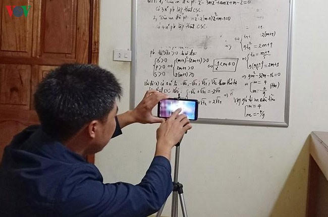 Thầy giáo chuẩn bị quay cho một bài giảng trực tuyến giúp học sinh ôn bài.