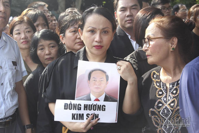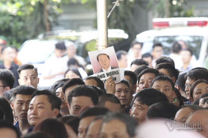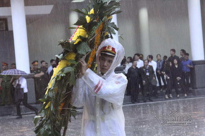 Mặc cho thời tiết khá oi nóng và cơn mưa lớn bất chợt cuối giờ chiều qua, hàng nghìn vẫn đổ về Nhà tang lễ quốc gia, số 5 Trần Thánh Tông (Hà Nội) để viếng Chủ tịch nước Trần Đại Quang.