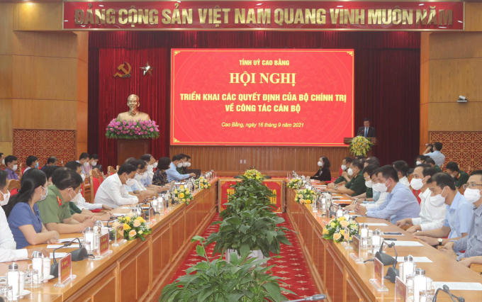 Sáng nay (16/9), Ban Tổ chức Trung ương đã tổ chức Hội nghị triển khai các quyết định của Bộ Chính trị về công tác cán bộ tại Cao Bằng. Đồng chí Trương Thị Mai, Ủy viên Bộ Chính trị, Bí thư Trung ương Đảng, Trưởng ban Tổ chức Trung ương tới dự.