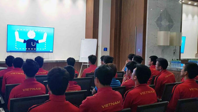 Đại diện Ban trọng tài của AFC sáng 22/1 tới khách sạn của ĐT Việt Nam để phổ biến kiến thức về công nghệ VAR (Trợ lý trọng tài Video) sẽ được áp dụng trong trận Việt Nam gặp Nhật Bản, trận đầu tiên vòng Tứ kết Asian Cup 2019.