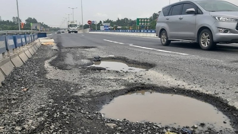 Nhiều ổ gà xuất hiện trên cao tốc Đà Nẵng - Quảng Ngãi sau khi đưa vào sử dụng.