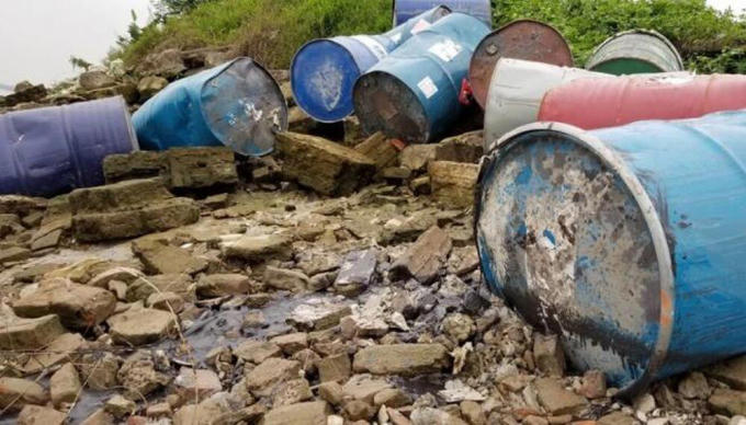 Điều tra vụ đổ trộm nhiều thùng phuy nghi chứa hóa chất xuống sông Hồng
