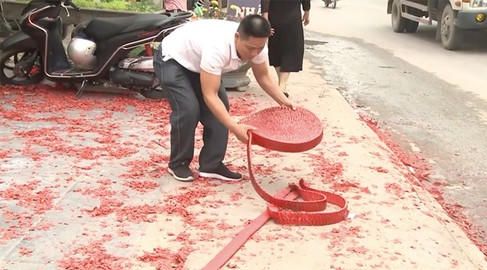 Điều tra, xử lý nghiêm vụ đốt băng pháo dài hàng chục mét tại một lễ cưới tại Sóc Sơn