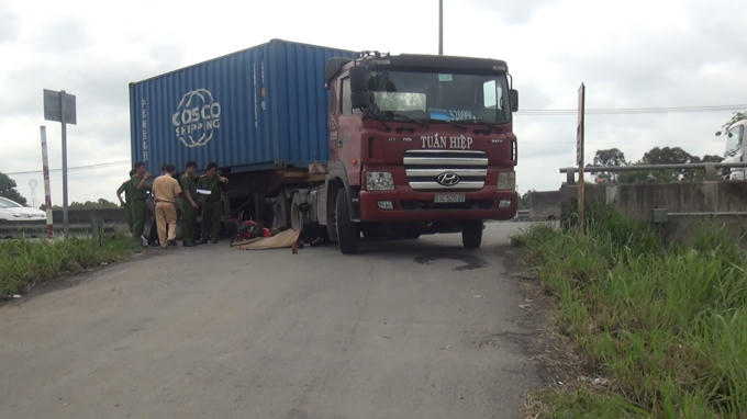 Va chạm làm anh Bảo ngã xuốn đường bị bánh xe container cán tử vong tại chỗ, thi thể mắc kẹt dưới bánh xe. Nhận tin báo, công an huyện Bình Chánh có mặt khám nghiệm hiện trường, điều xe cẩu tới nâng container mới đưa được thi thể nam thanh niên ra ngoài.