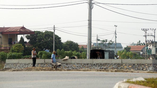 Bà Vũ Thị Phương Thúy (ở xã Thủ Sỹ, huyện Tiên Lữ) cho biết, UBND xã Thiện Phiến cũng yêu cầu tất cả các hộ dân cam kết không xây dựng, trồng cây, đổ chất thải ra hành lang an toàn giao thông. Tuy nhiên, bất ngờ xuất hiện móng công trình xây dựng tại khu vực cấm chắn phía trước khiến các hộ dân tại đây không thể kinh doanh buôn bán được.