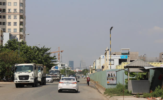 Theo phản ánh, chủ đầu tư dự án Khu biệt thự Lancaster Eden chiếm vỉa hè, nhiều người dân, nhất là các em học sinh, không có lối đi bộ. Trong khi dưới lòng đường các xe tải nặng, xe ben chở vật liệu ra vào công trình thường xuyên.