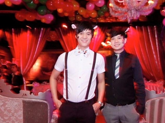 | Nguyễn Trung Tín (áo đen) và một người bạn. |