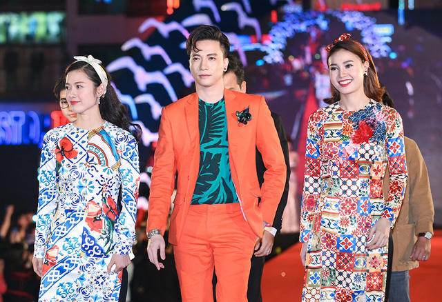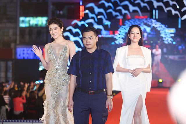 Cả 3 người đẹp đều rạng rỡ trong trang phục dạ hội lộng lẫy xuất hiện trên thảm đỏ đêm bế mạc Liên hoan phim lần thứ 20 tại Đà Nẵng.
