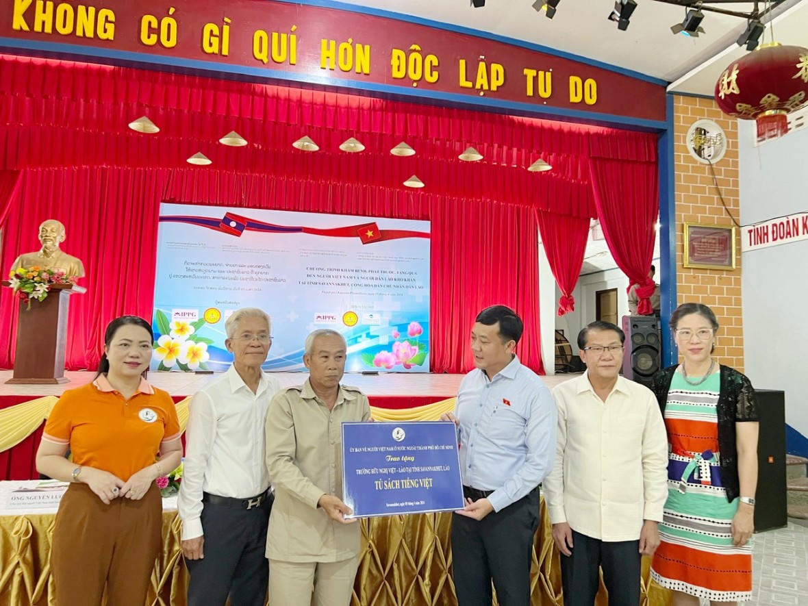 Dịp này, Ủy ban về Người Việt Nam ở nước ngoài TP.HCM trao tặng “Tủ sách tiếng Việt” đến Trường Hữu nghị Việt - Lào. Đây là hoạt động nhằm hưởng ứng Đề án “Ngày Tôn vinh tiếng Việt trong cộng đồng người Việt Nam ở nước ngoài giai đoạn 2023-2030” của Chính phủ.