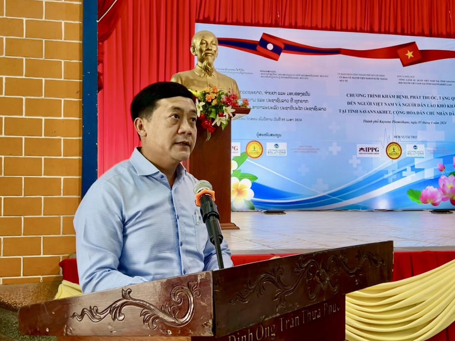 Phó Trưởng đoàn Đại biểu Quốc hội TP.HCM gửi lời cảm ơn chân thành đến lãnh đạo chính quyền các cấp nước bạn Lào đã tạo điều kiện thuận lợi cho bà con người Việt Nam được học tập và làm việc. Đồng thời, hỗ trợ và tạo điều kiện thuận lợi cho TP.HCM tổ chức thành công hoạt động này tại tỉnh Savannakhet.