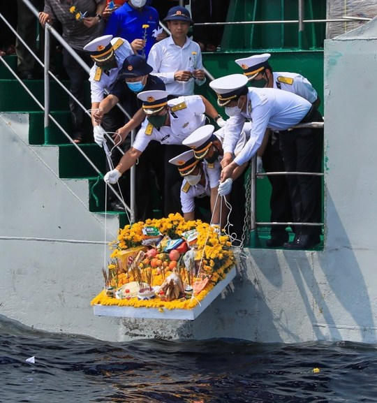 Đoàn công tác số 3 tưởng niệm các chiến sĩ Hải quân Nhân dân Việt Nam đã anh dũng hy sinh tại đảo Gạc Ma, Cô Lin, Len Đao.
