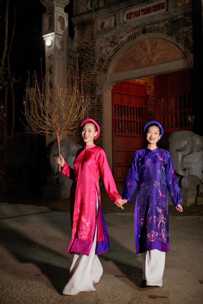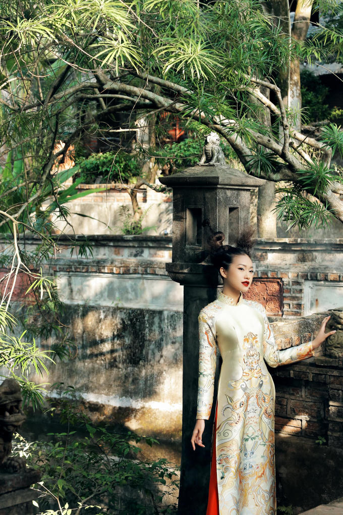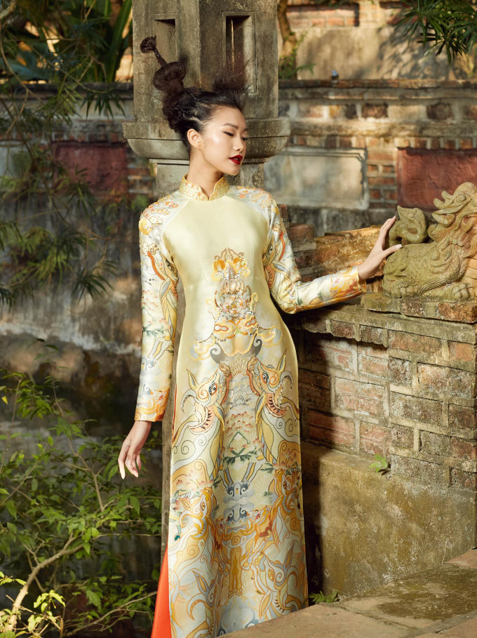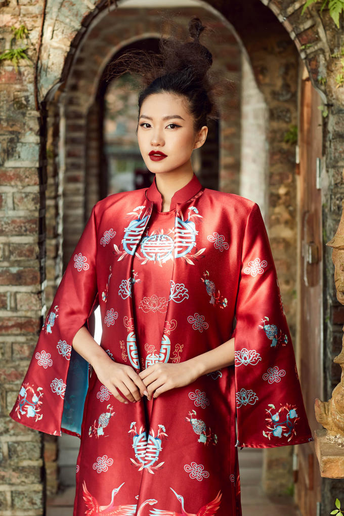 Sau khi nghiên cứu, phát triển ý tưởng, NTK đã chỉnh sửa các thông số để áo dài ngũ thân không quá rộng gây vướng víu nhưng vẫn đủ để tôn đường cong và vẻ đẹp của người phụ nữ. Đặc biệt, chất liệu lụa tơ tằm giúp giữ ấm khi trời lạnh và làm mát khi trời nóng, khiến trang phục mang tính ứng dụng cao hơn. Ngoài lụa tơ tằm, chất liệu nhung, gấm cũng phù hợp với thời tiết lạnh miền Bắc.