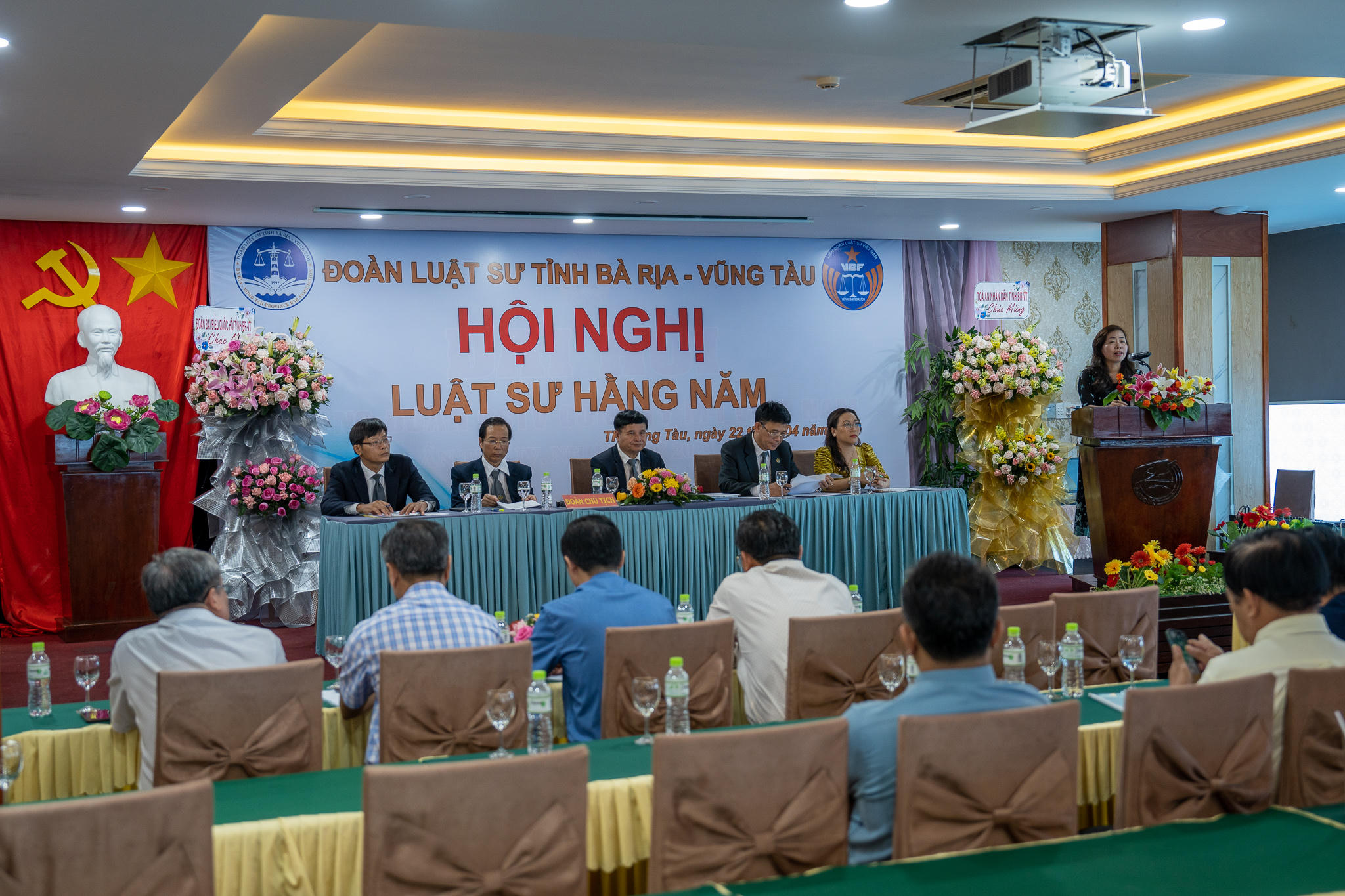 Tham dự hội nghị có bà Đặng Thiên Hoa - Phó Cục trưởng Cục Bổ trợ Tư Pháp (Bộ Tư Pháp), luật sư Nguyễn Hải Nam - Phó Chủ nhiệm Đoàn Luật sư Việt Nam, luật sư Trương Xuân Tám – Chủ nhiệm Đoàn luật sư tỉnh Bà Rịa - Vũng Tàu cùng đại diện các cơ quan, ban, ngành tỉnh Bà Rịa - Vũng Tàu, Đoàn luật sư các tỉnh thành bạn và các luật sư đang sinh hoạt tại Đòan luật sư tỉnh.