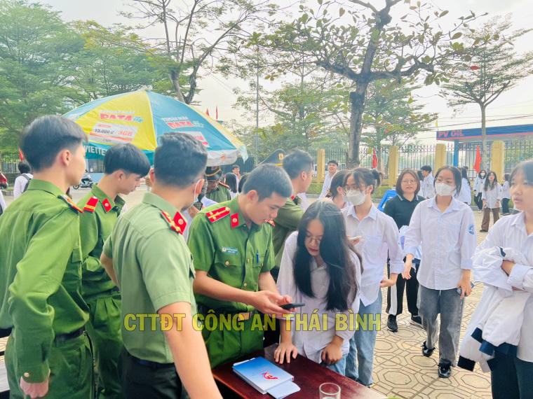 Đoàn Thanh niên Công an tỉnh Thái Bình tổ chức tuyên truyền pháp luật về an toàn giao thông, phòng ngừa tội phạm và tuyên truyền, hướng dẫn cài đặt ứng dụng VNeID cho học sinh trên địa bàn TP Thái Bình.