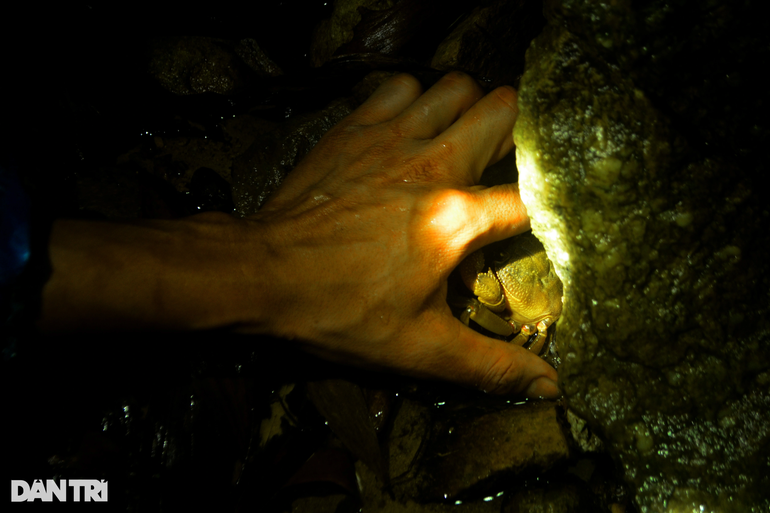 "Dù vậy, do bị săn lùng nhiều, cua đá giờ cũng rất khôn, chỉ cần thấy ánh đèn loáng qua là tìm chỗ ẩn nấp ngay. Vì vậy, người bắt cần nhanh mắt nhanh tay, khi phát hiện cua phải chộp ngay vì chúng rất nhanh, không giống như cua đồng", anh Thủy chia sẻ thêm.