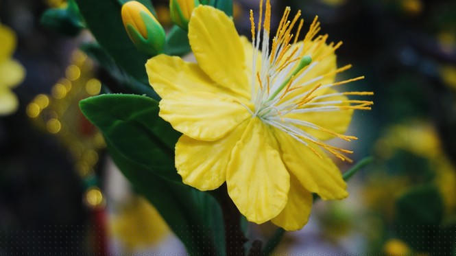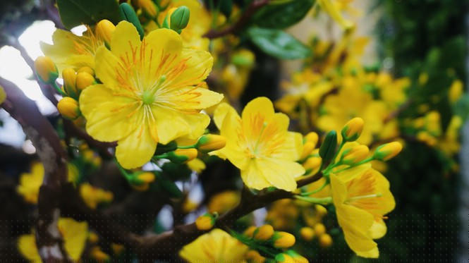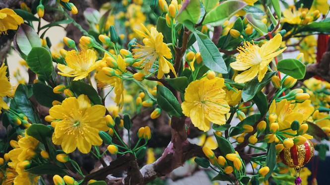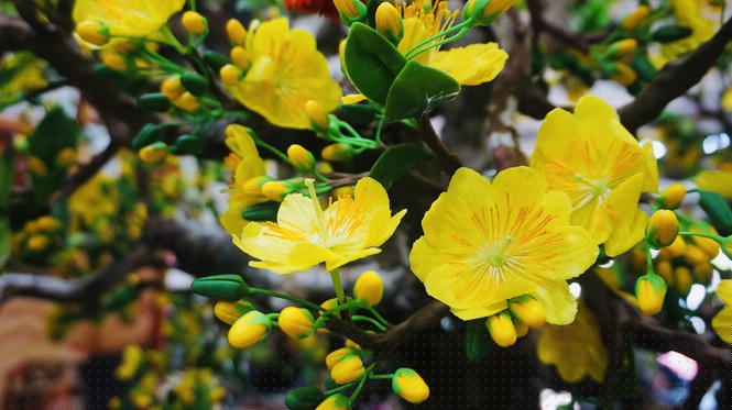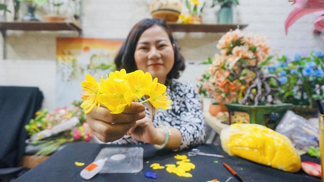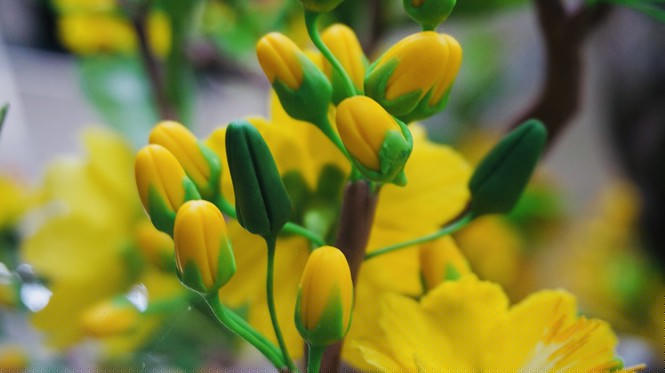 Hoa mai nhìn rực rỡ sắc vàng, khó phân biệt được đây là hoa từ đất sét.