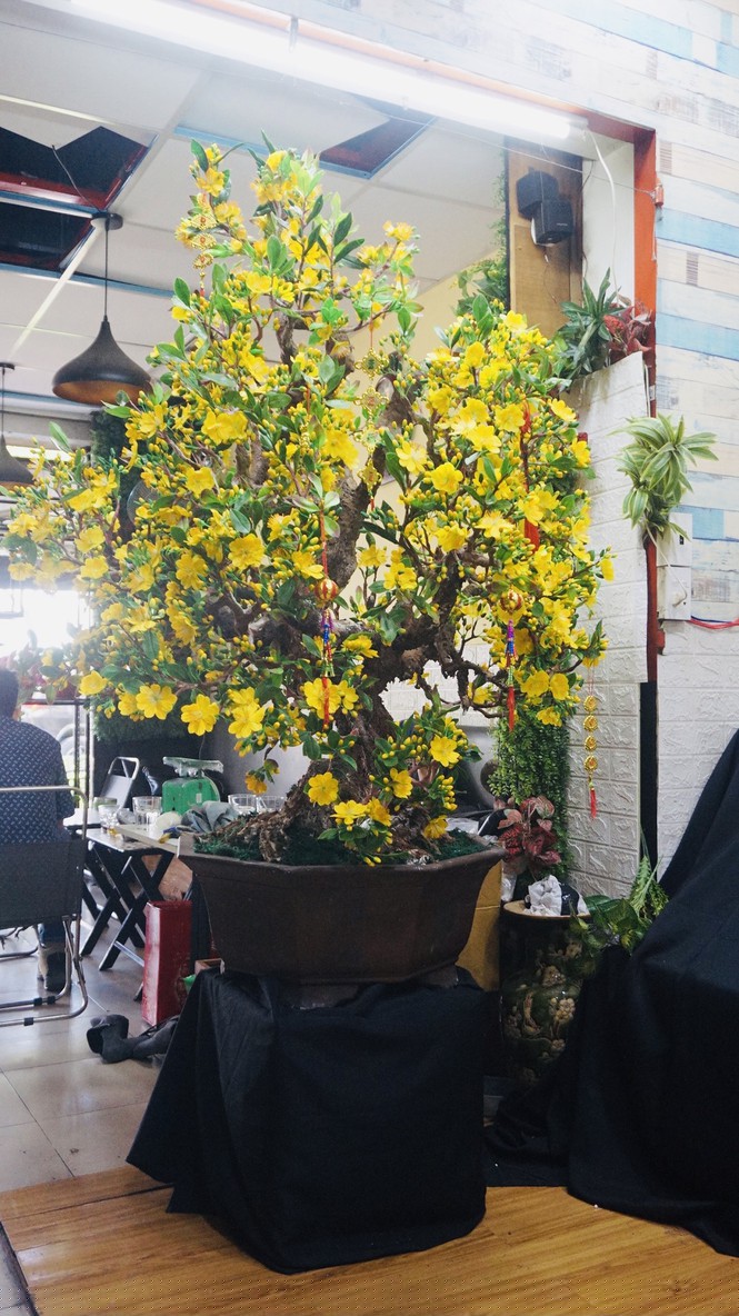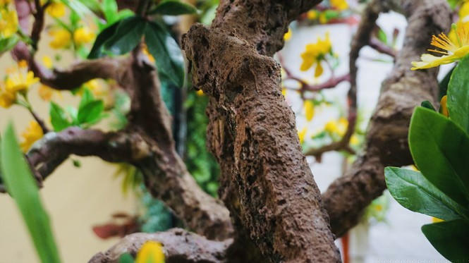 Cây mai được các nghệ nhân thực hiện trong vòng 3 tháng với 35kg đất sét để cây có chiều cao 2m, tán rộng 1m2.