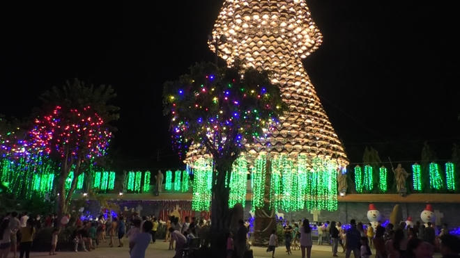 Đón Giáng sinh năm nay, người dân Đồng Nai có thêm một công trình độc đáo đó là cây thông Noel lớn tại TP Biên Hòa được làm từ hơn 2.000 chiếc nón lá.