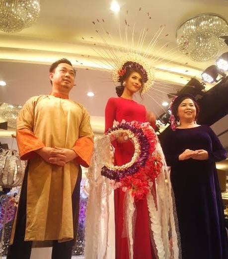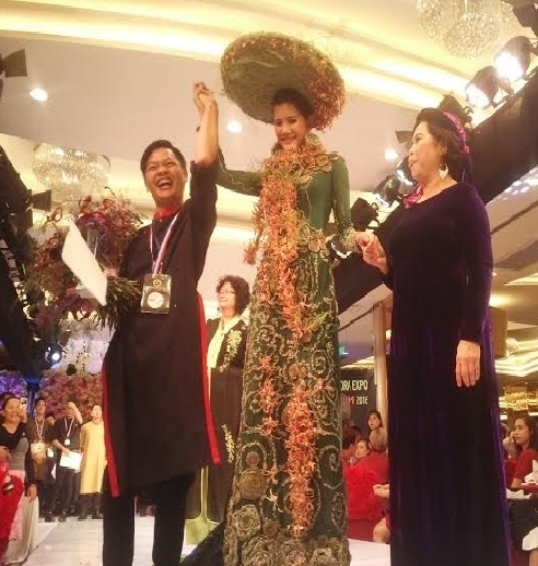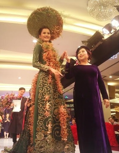 | Bà Mai Hoa, chủ tịch sự kiện và người mẫu trình diễn sản phẩm đạt giải nhất cuộc thi. |