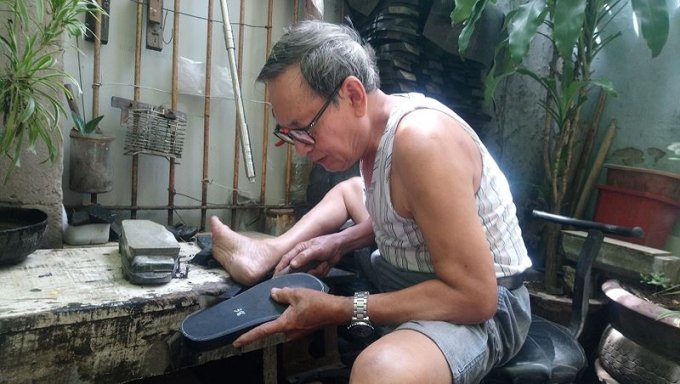 Trong ngôi nhà nhỏ ở đường Nguyễn Biểu (quận Ba Đình, Hà Nội), ông Xuân vừa cặm cụi một mình tạo tác đôi dép cao su thô sơ huyền thoại, mà dân gian hay gọi “đôi dép Bác Hồ”, "dép lốp".