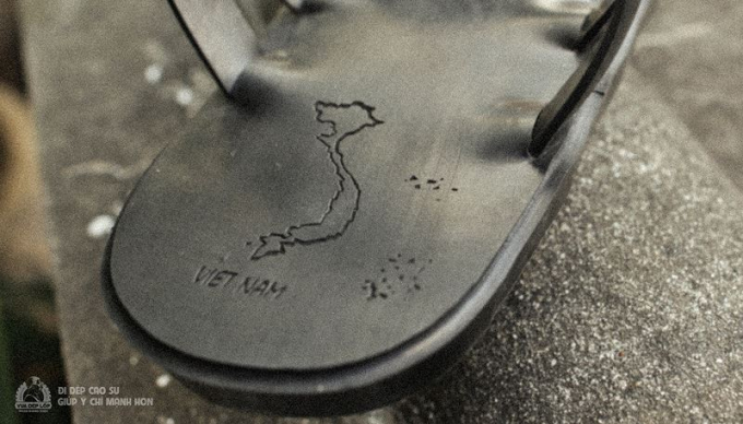 Bản đồ Việt Nam với quần đảo Hoàng Sa và Trường Sa được khắc trên đôi dép lốp huyền thoại